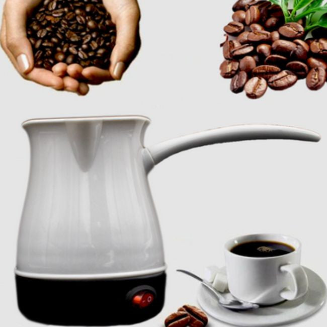 Versatile Use: Not only to brew coffee, but also to brew tea and milk. non-toxic, with warning lights under the lights to ensure safety and comfort. Ergonomic design for comfortable gripping. The Electrical Mini Coffee Pot is equipped with an on and off button, and it is easy to carry around.