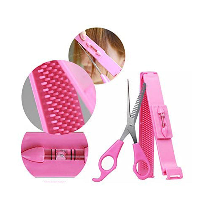 This kit contains a hair clip and a pair of scissors to easily accomplish salon-quality trimmed bangs at home.
