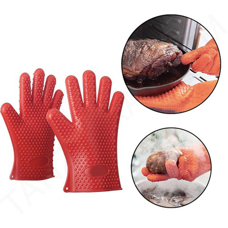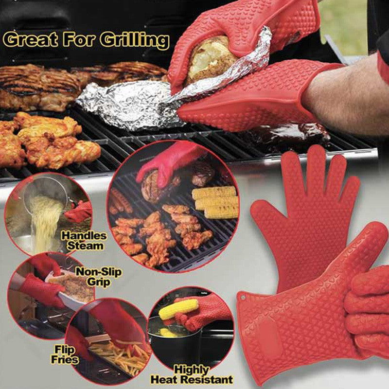 Our gloves feature five fingers with a non-slip grip and raised grippers that repel heat away from your hands, making it safe to handle hot meats, veggies, seafood, and more. You can even grip hot pots, pans, skillets, and baking trays without worrying about getting burned.