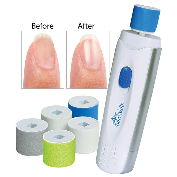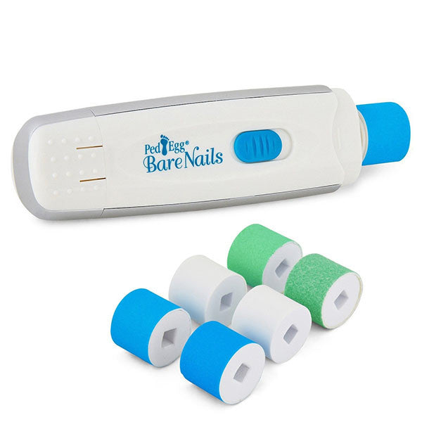 Ped Egg Bare nails buffs and shine nails to a high-gloss finish without the need to apply polish! A motorized polisher quickly and easily transforms dull nail surfaces to a dazzling finish that lasts up to two weeks.