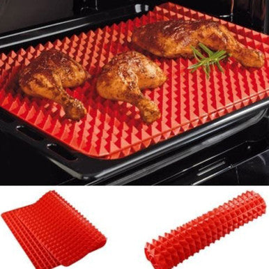 Top Pyramid Pan is the perfect kitchen accessory for health-conscious cooking tasks like baking, grilling, and stir-frying. It is four-sided and features over 500 silicone pyramids on its surface that let your food rest above the bottom of the pan for more even and healthy cooking.