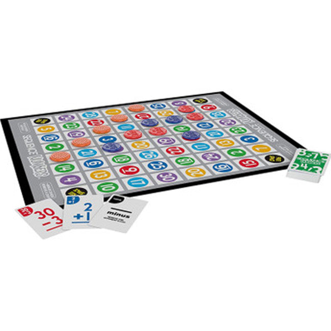 Sequence Numbers is an exciting and educational game that helps children learn math while having fun. The game includes cards with addition and subtraction equations, and a board with the corresponding answers. The players match the cards to the correct answer on the board and place their chips there. The game is won when a player has 5 of their chips in a row, forming a sequence.
