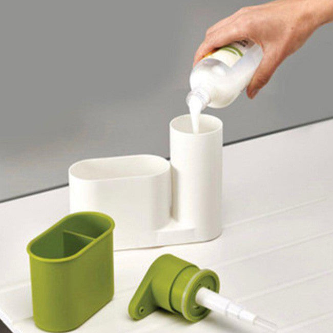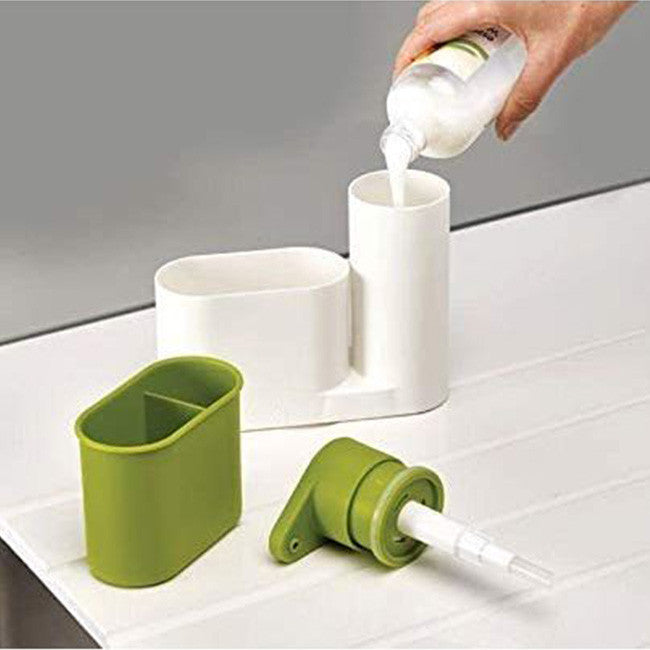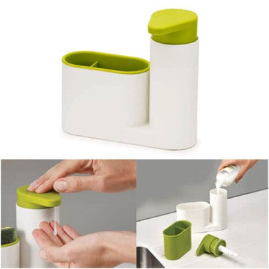 2 Piece Sink Tidy Set - Easy Press Soap Pump is one of the ultimate dishwashing tools around. A simple press of its center button releases soap, and only when you need it; the bristles accept and excel at even the toughest scrubbing assignment. The soft, nonslip brush cap fits easily into the palm and absorbs tension from the hands--it's also slip-proof, wet or dry. Refilling the brush with soap is easy: simply unscrew the cap and add soap. Dishwasher-safe. Good Grips products are moderately priced and have won the Tylenol/Arthritis Foundation Design Award Refilling the brush with soap is easy: simply unscrew the cap and add soap.