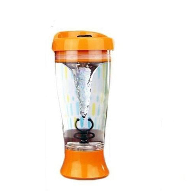 The mixing power is of a whirling vortex. The product is battery operated and is of rugged construction with a capacity of 414 ml. Have more fun mixing chocolate milk with the Skinny Self Stirring Mug.