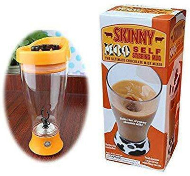 Self-stirring mug chocolate milk and juice mixer - Have much fun mixing chocolate milk with the Skinny Self Stirring Mug powered by battery, the magic mug is made with a built-in stirring device to help you dissolve milk and chocolate syrup evenly without the need of using a spoon. It creates a powerful whirling vortex to make perfectly mixed milk in seconds. a spill-proof design thanks to its snug-fit sip-top lid. It works magic with all syrup or powder-based drinks.