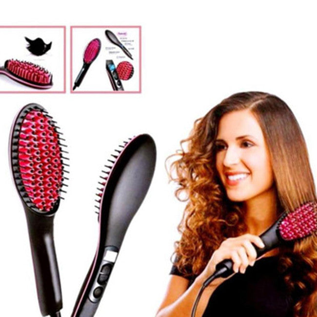 Simply Straight is a ceramic straightening brush which is a 2-in-1 hair straightener and brush. It combines the power of a flat iron with the styling ability of a brush. The secret is Simply Straight's ceramic wrapped bristles that lift hair at the root to deliver gentle heat around every strand without flattening or frying your hair. Because you straighten and style in 1 pass, you'll be done in half the time. Simply Straight is perfect for all types of hair, any length of hair, and is perfect for all ages. Simply Straight provides perfect straight, salon-quality results in just minutes.