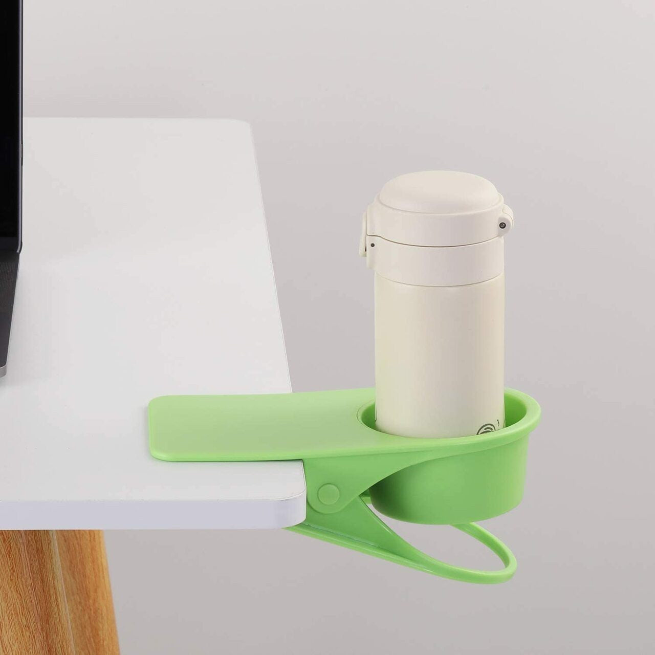 Now, this cup clip is coming in handy. Just fix it at one side of the table or desk, then you can put a cup on and save room as well. Also, it is suitable for different sizes of cups. Not just for the table, you could clip some other things such as books, magazines, clothes, etc. Put it to use as you want. It's a multipurpose clip, you must not be missing it