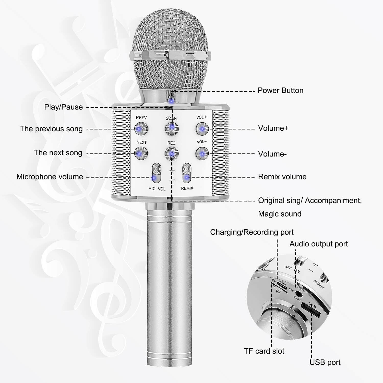 “Say goodbye to cords and hello to endless fun – our Wireless Bluetooth Karaoke Microphone brings music to life!”
